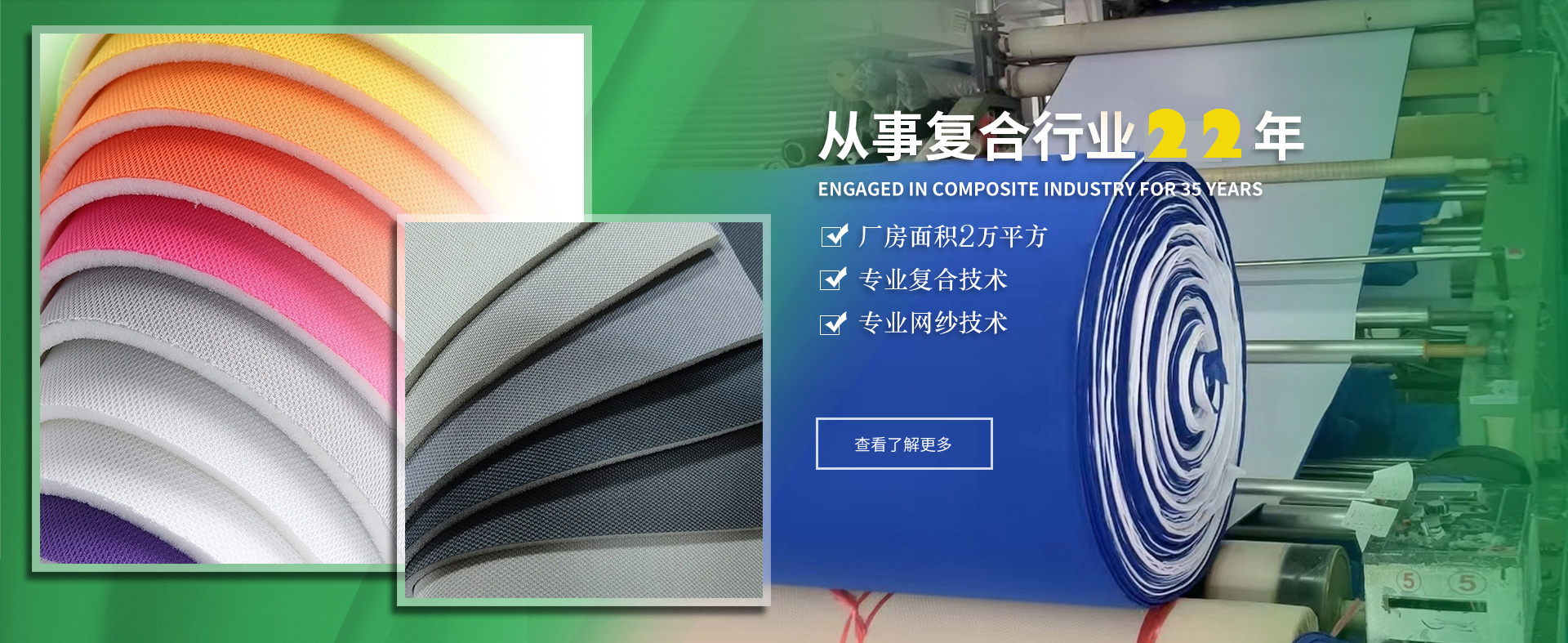 溫州市鑫興隆鞋材復(fù)合有限公司創(chuàng)辦于2002年,座落于溫州市龍灣區(qū)濱海九路18號。分公司溫州金埠鞋業(yè)有限公司座落于溫州市鹿城區(qū)中國鞋都2期27號地塊,生產(chǎn)車間20000平方。第1車間主要生產(chǎn)鞋材復(fù)合布、頭盔內(nèi)襯復(fù)合布、箱包內(nèi)襯復(fù)合布、汽車座椅套復(fù)合布、醫(yī)療復(fù)合布、護(hù)腕護(hù)膝復(fù)合布、潛水料復(fù)合布,EVA、切片復(fù)合布。第2車間主要生產(chǎn)針織布料、定型布、里子布、網(wǎng)紗、 ...